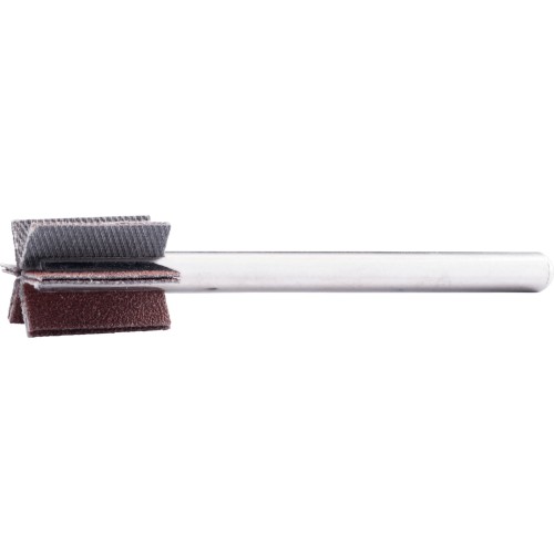 44403251Abanico lijador de corindón F Ø 15x20 mm, mango Ø 6 mm, longitud 60 mm, láminas 6x2, láminas A150 para lijado fino y acabado