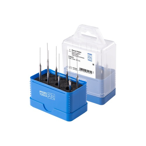 PFERD TOOLS Juego de agujas diamantadas de 8 piezas, Ø 0,42-0,72 mm, mango con Ø de 3 mm D46/64 (fino)