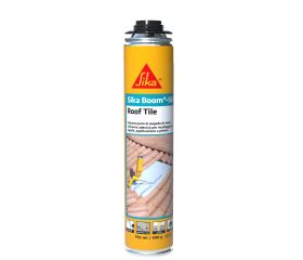 Espuma adhesiva de poliuretano para aplicación con pistola, ideal para el pegado y sellado de tejas, sustituyendo morteros y permitiendo una aplicación rápida incluso en sustratos irregulares.