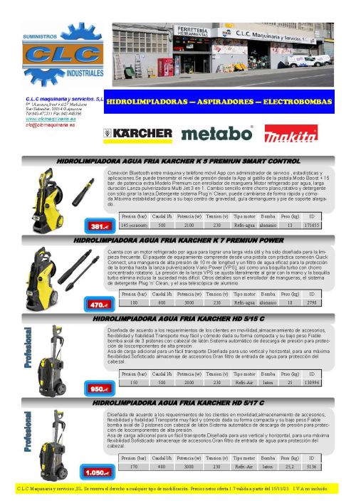Oferta Hidrolimpiadoras Aspiradores Electrobombas 1.7